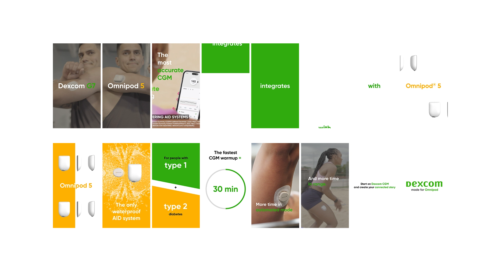 As part of Dexcom's initiative to highlight the connection between the Dexcom G7 and Omnipod 5, our team was tasked with emphasizing their new Type 2 diabetes indication. My specific role involved storyboarding a 30-second hype reel that showcased the integration in a high-energy, eye-catching way, utilizing existing resources.