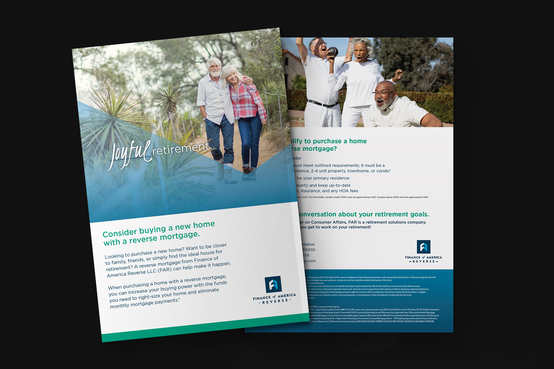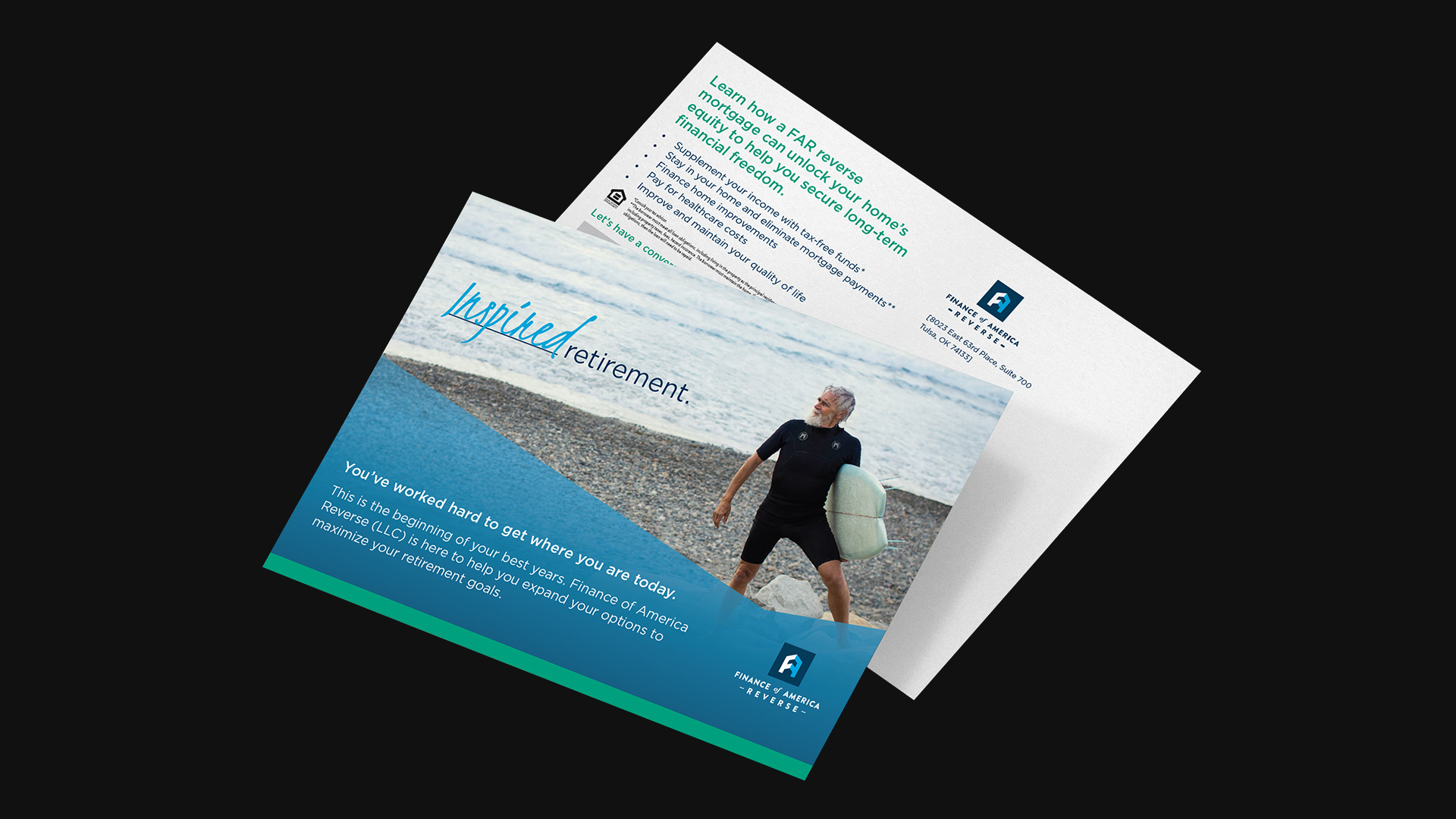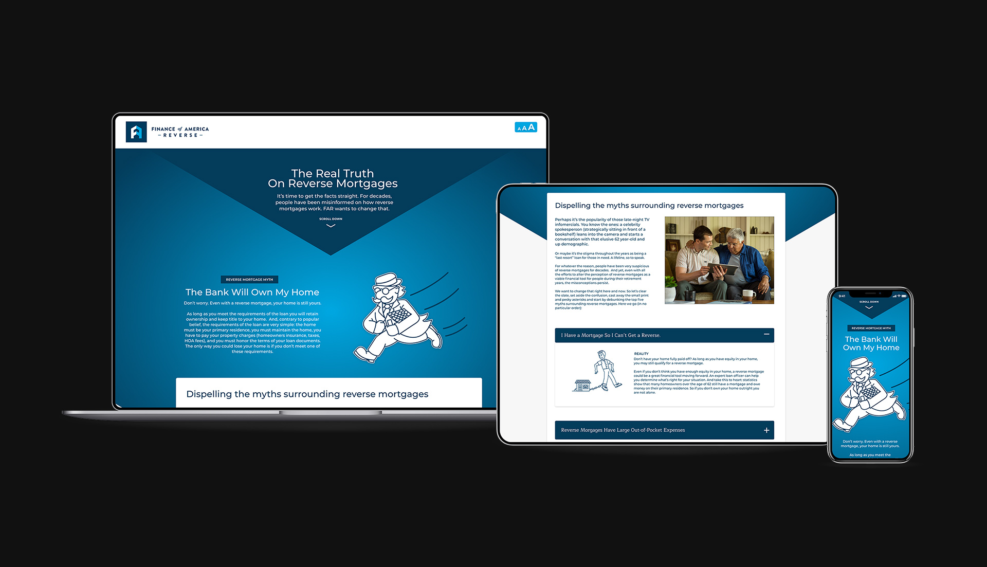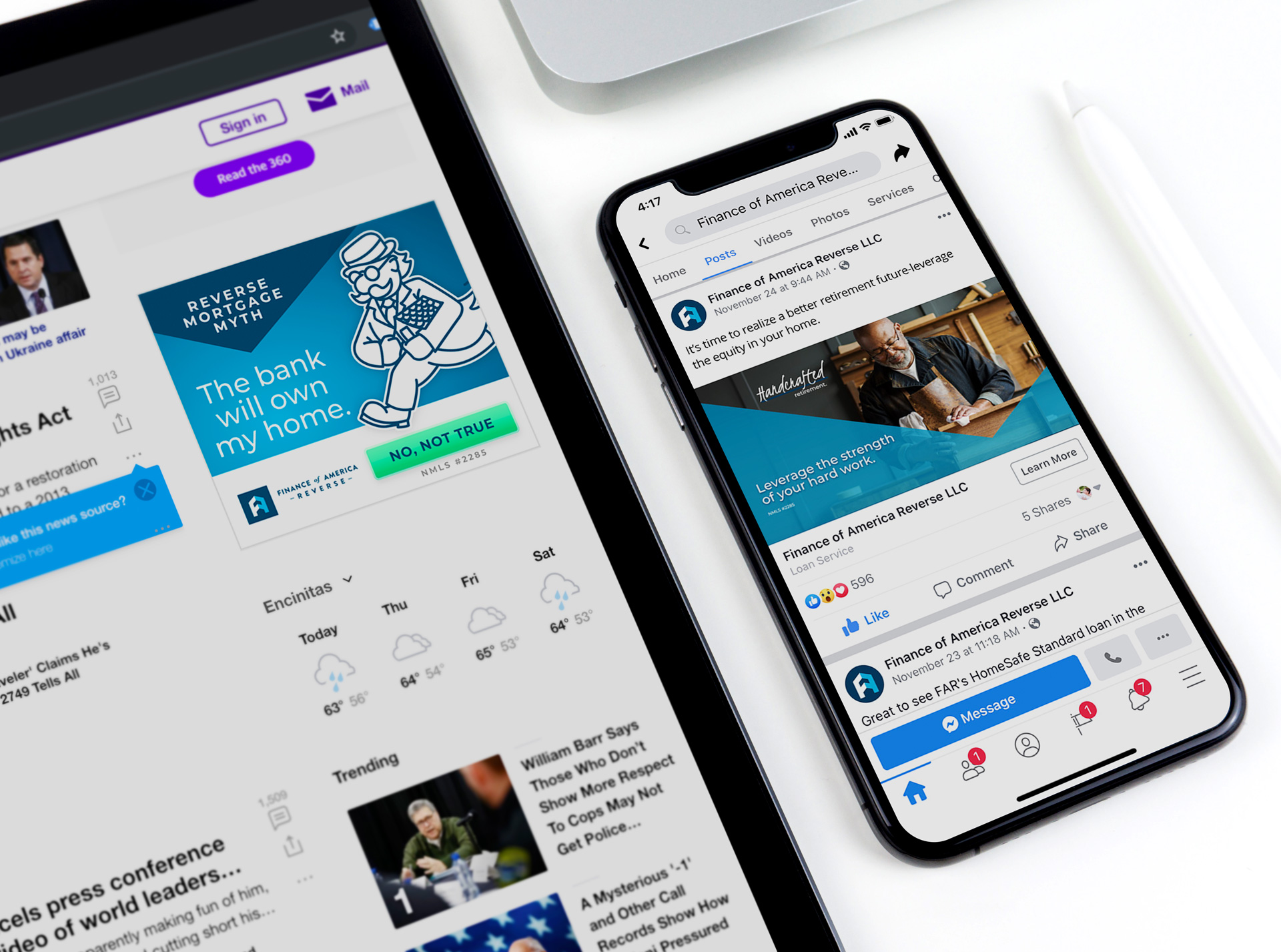 Finance of America Reverse was looking to increase the number of quality leads reaching out to them each month. However, with a massive misunderstanding about reverse mortgages, most people shied away from the thought of using their largest nest egg (their home) to help them in retirement. To counter this, we created an awareness campaign to help dispel the myths surrounding reverse mortgages and help people leverage their homes to fund retirement.