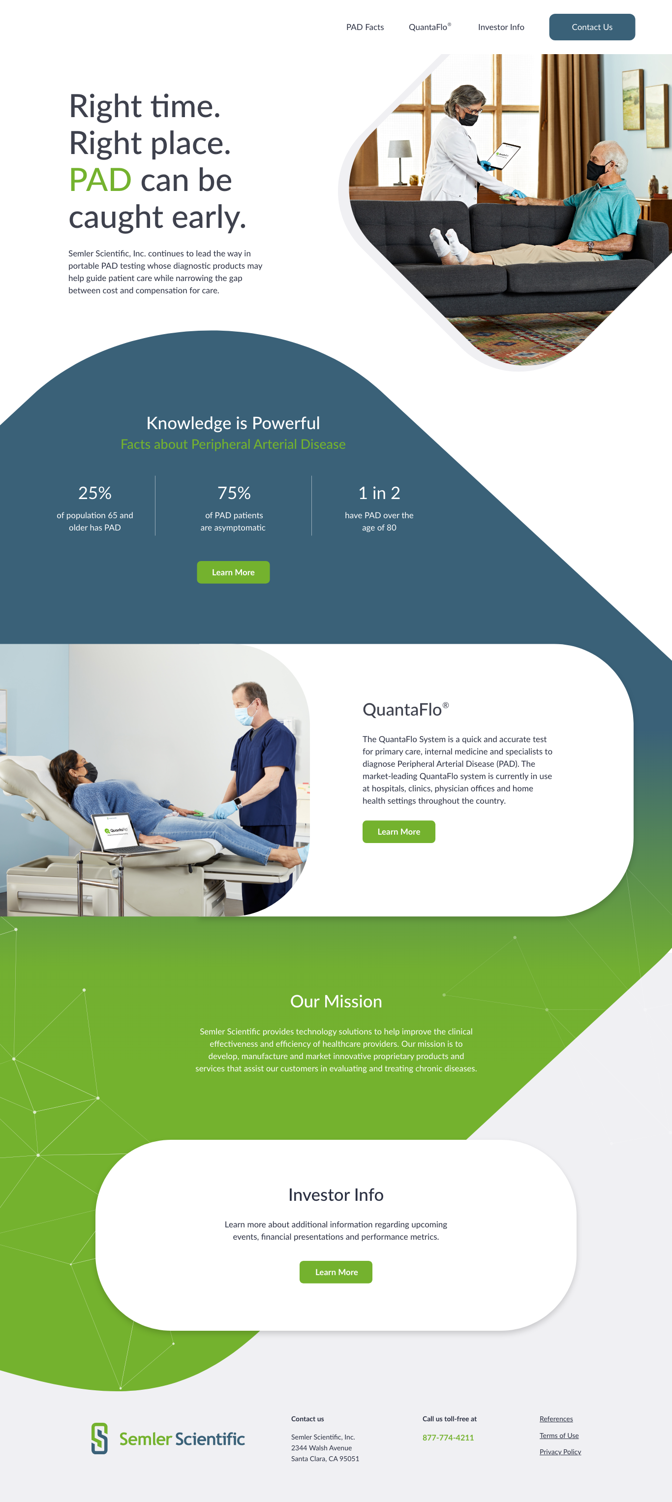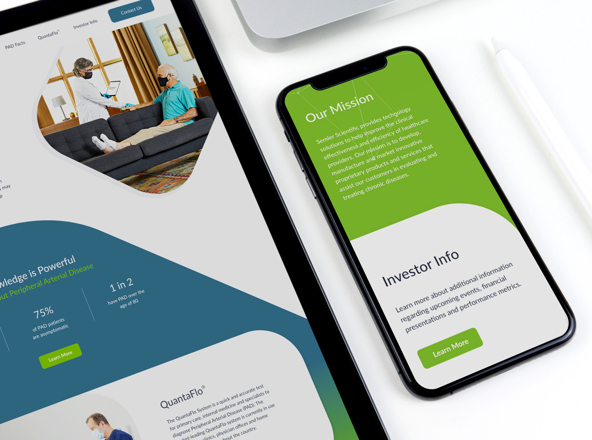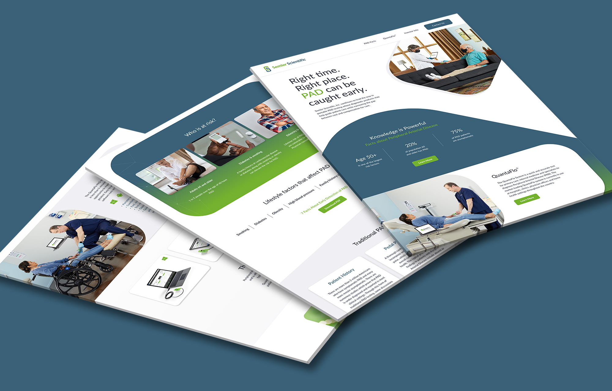 Semler Scientific creates the QuantaFlo System which helps primary care, internal medicine, and specialists help diagnose Peripheral Arterial Disease (PAD). With adoption growing they were looking to create a uniquely branded website that spoke to their target market while setting them apart from industry competitors.